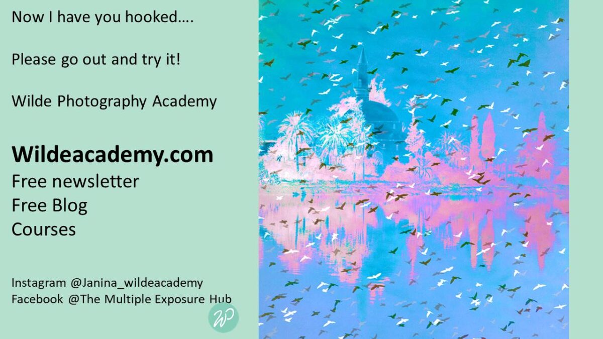 This week we had Janina Wilde as our guest speaker, and as the header says Janina dazzled us with some amazing multiple exposure images. Janina's talk was of two halves. Firstly how to use the in camera multi exposure function, and giving the audience a practical demonstration. Second half was more to do with the software side of blending images together, and the effects you can achieve.